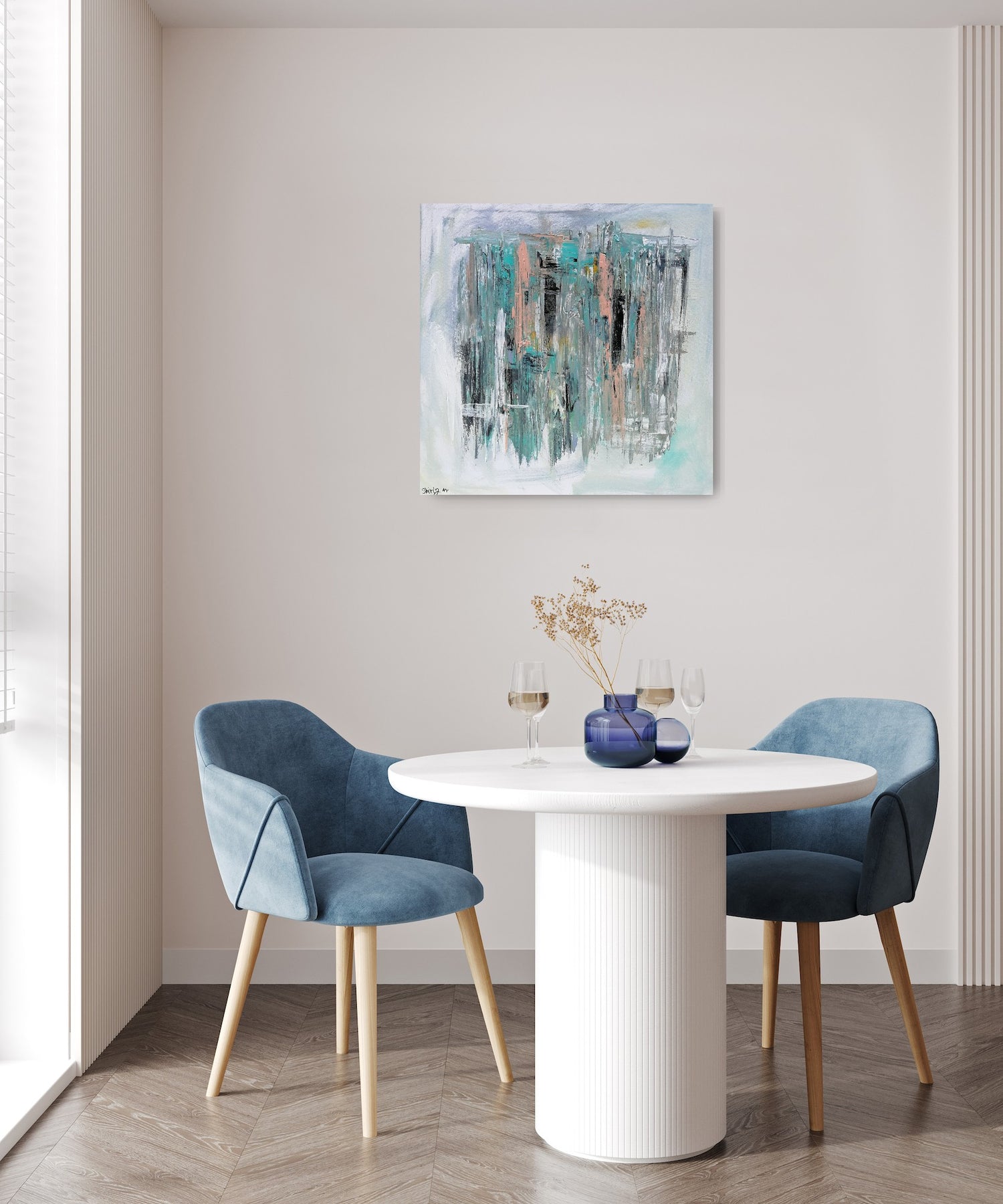 This painting speaks about what arrives after a storm, about the breath returning to its natural rhythm, about that small moment that brings me back to myself without effort and without drama, a moment that feels like home, simple and true.