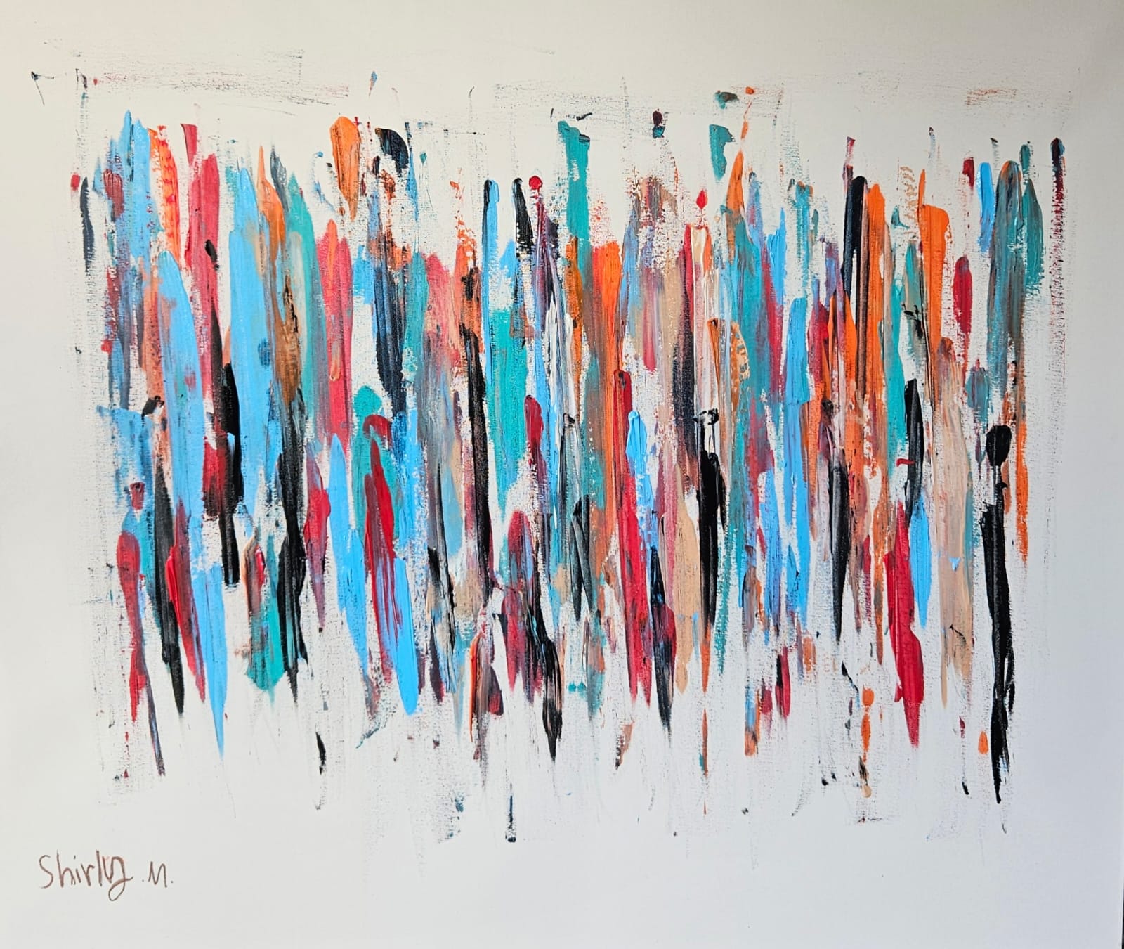 At first glance, each line in the painting seems to stand on its own — a bold color, a distinct presence, a unique path. But, as in life, the true beauty emerges precisely in what lies between. Those subtle spaces are fields of conversation, delicate exchanges of energy, places where voices are heard that do not always take shape in words. It is there that new interactions are born, where colors and emotions blend, where the movement that animates the whole picture comes alive.