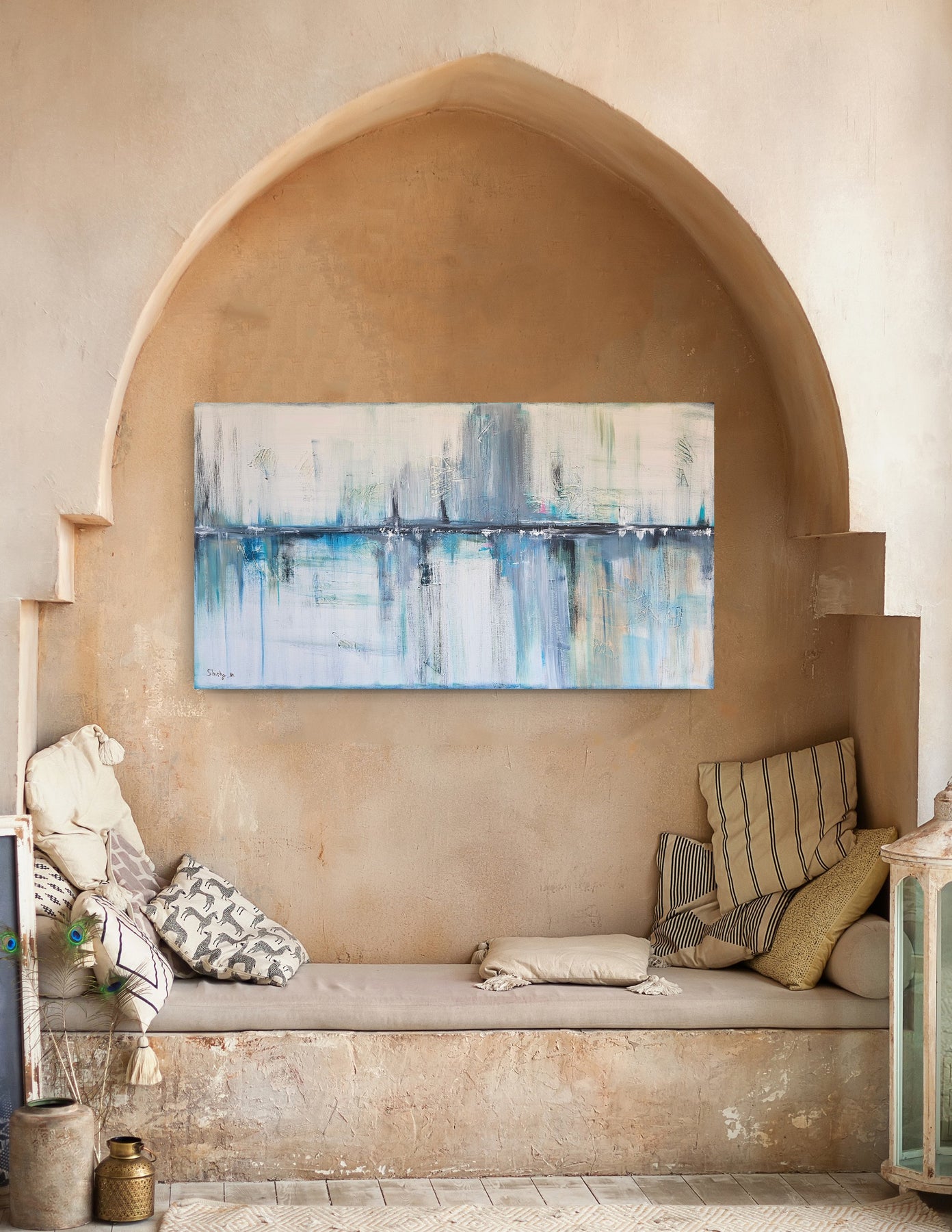 For international orders, the painting will be shipped rolled in a protective tube, Ready to be stretched locally.