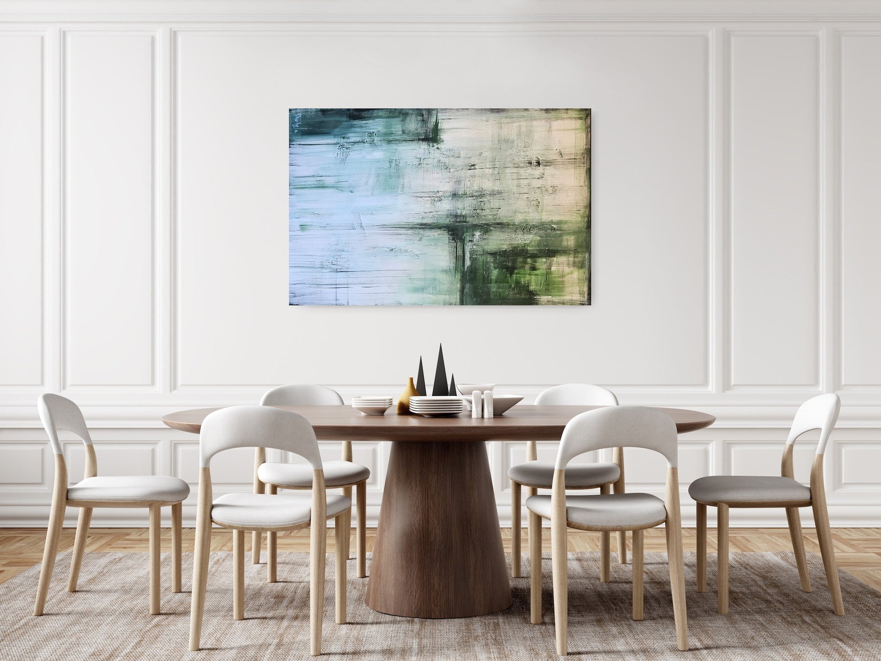 The greens bring stability and grounding, the lighter tones open space for breath, softness, and ease. Between them lies a gentle balance, almost invisible, like the pause between one heartbeat and the next.