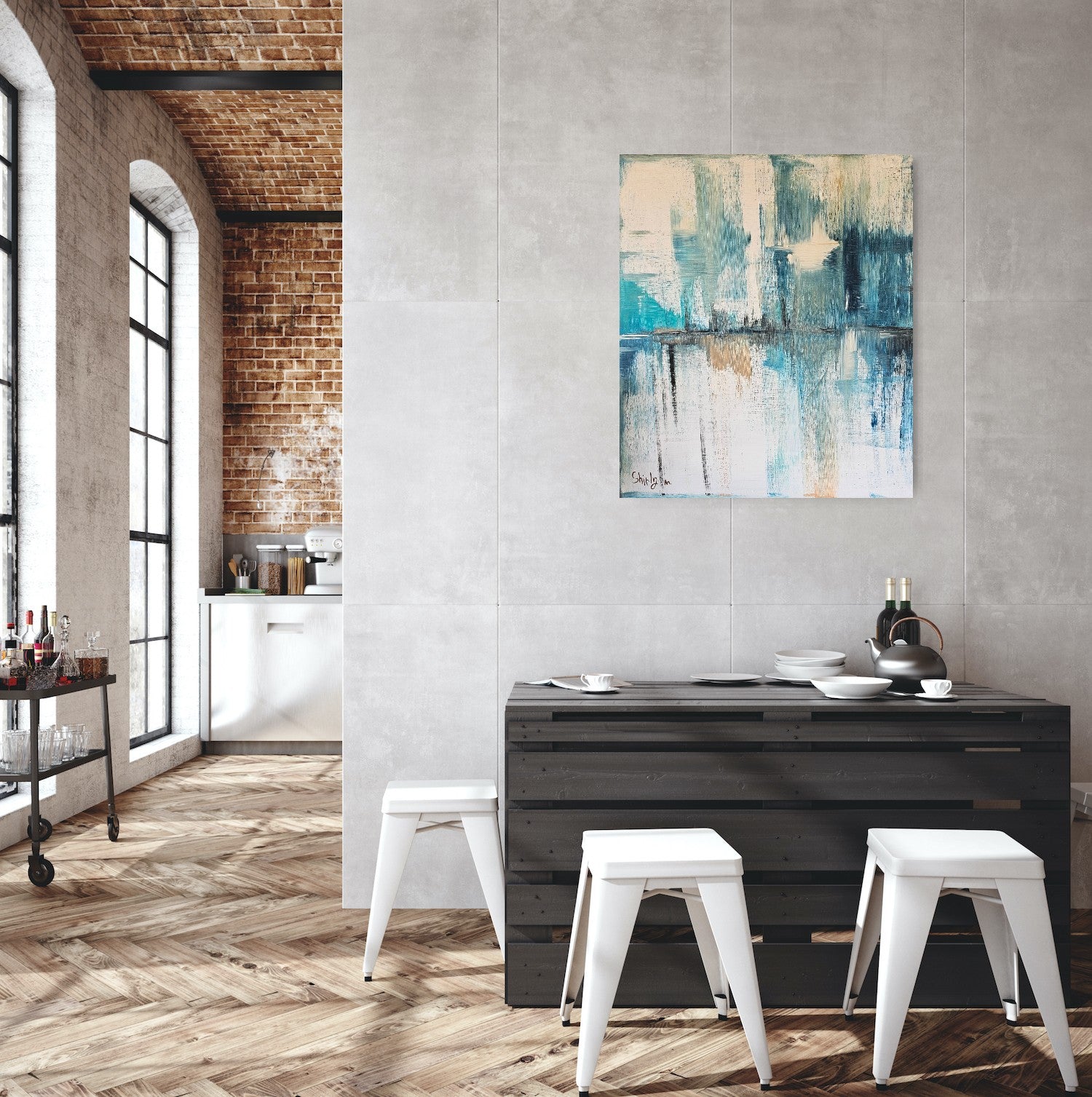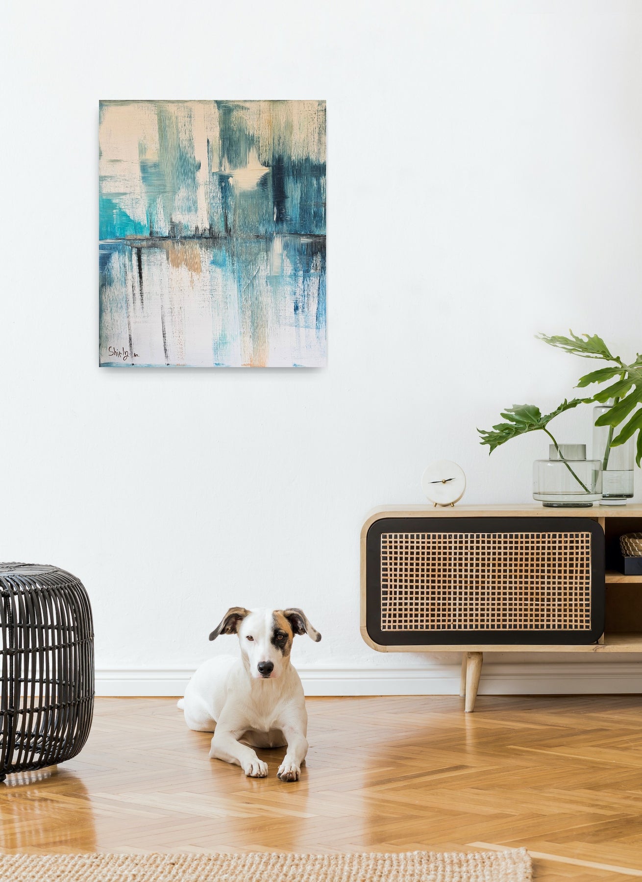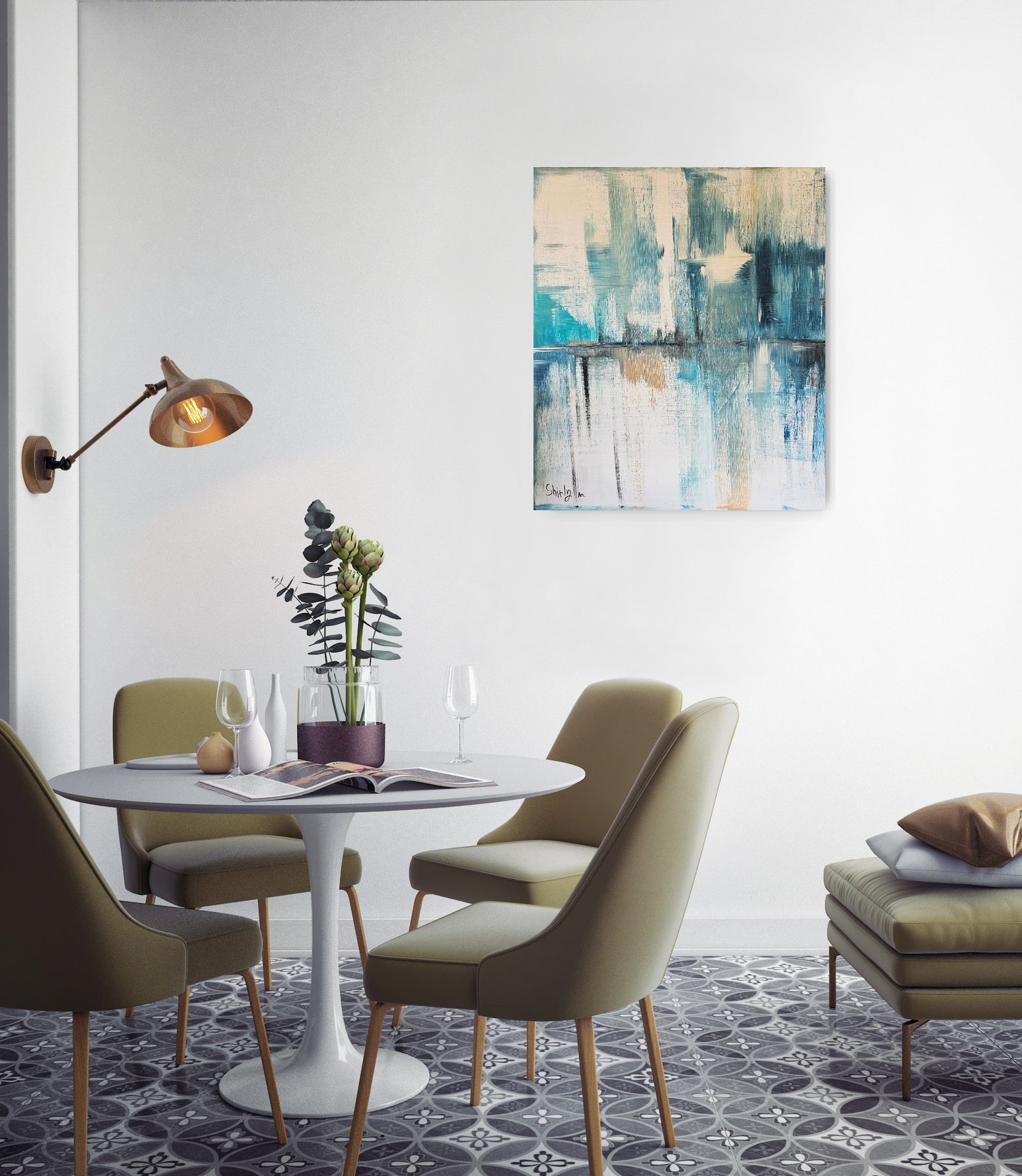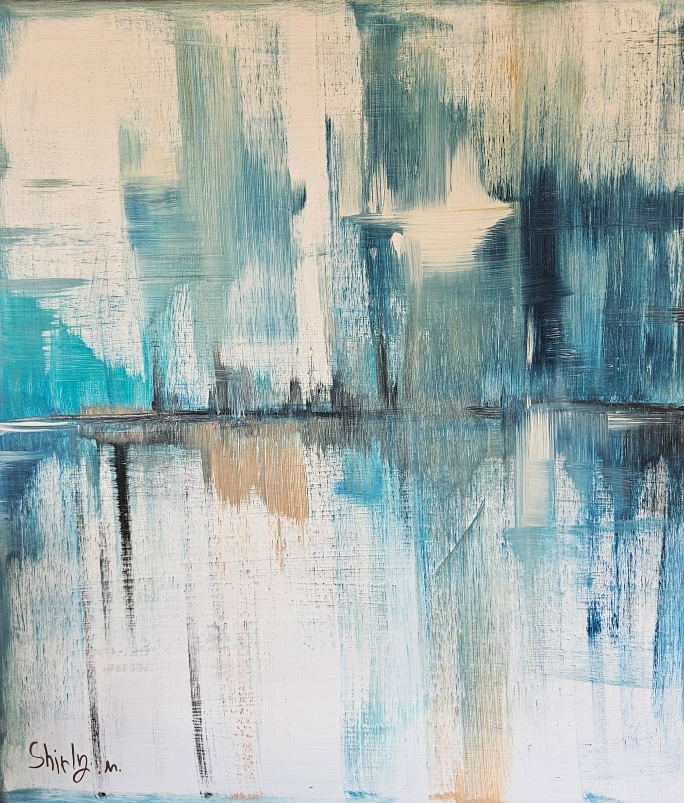 The blue and turquoise tones here are transition—they remind me that life moves in waves. The white gives air, a place for the eyes to rest and for the heart to understand. Some areas are calm, some are stormy, and between them a small space appears—the place where choice is made. A space that helps me see what matters and what is just momentary noise.